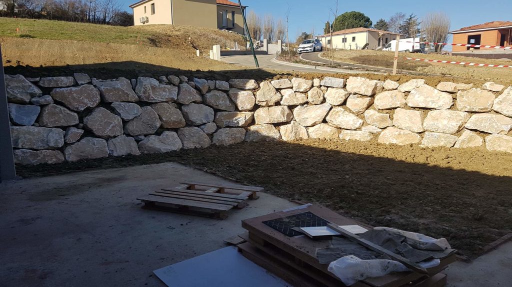 Les enrochements de soutènement : aussi appelé enrochement de talus ou mur d’enrochement, cet aménagement consiste à maintenir la terre d’un terrain en pente ou sur différents niveaux afin d’éviter tout risque d’éboulement et de glissement de terrain.